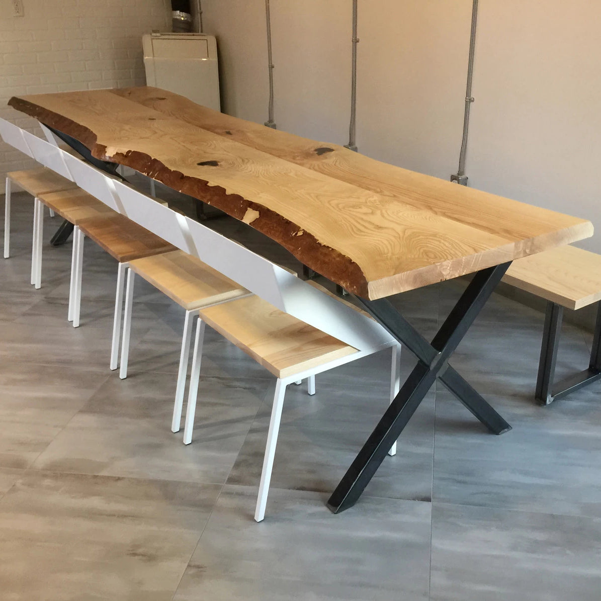 Live Edge Ash Table & X Metal Legs