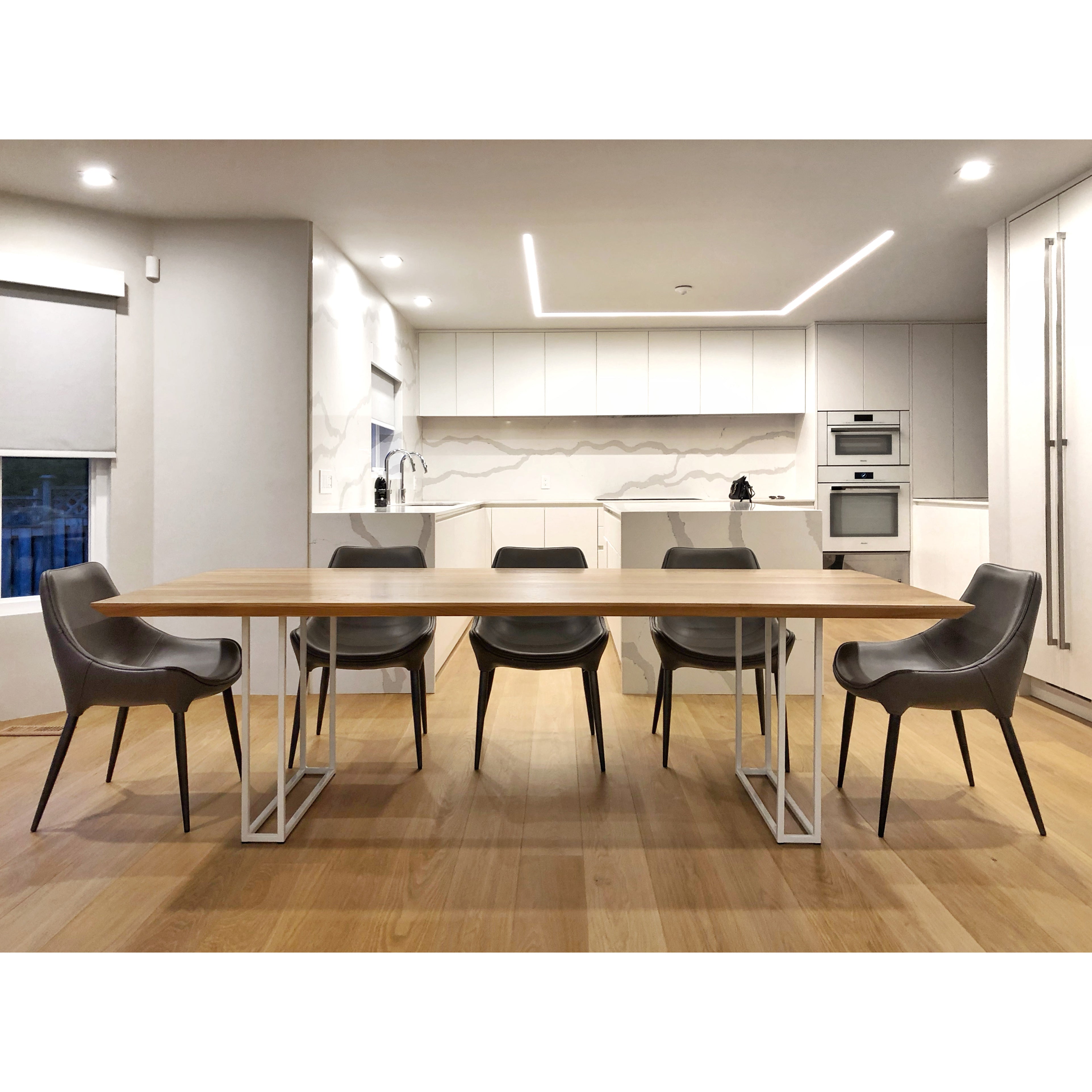 Bevel Edge White Oak Table & White U Frame Legs