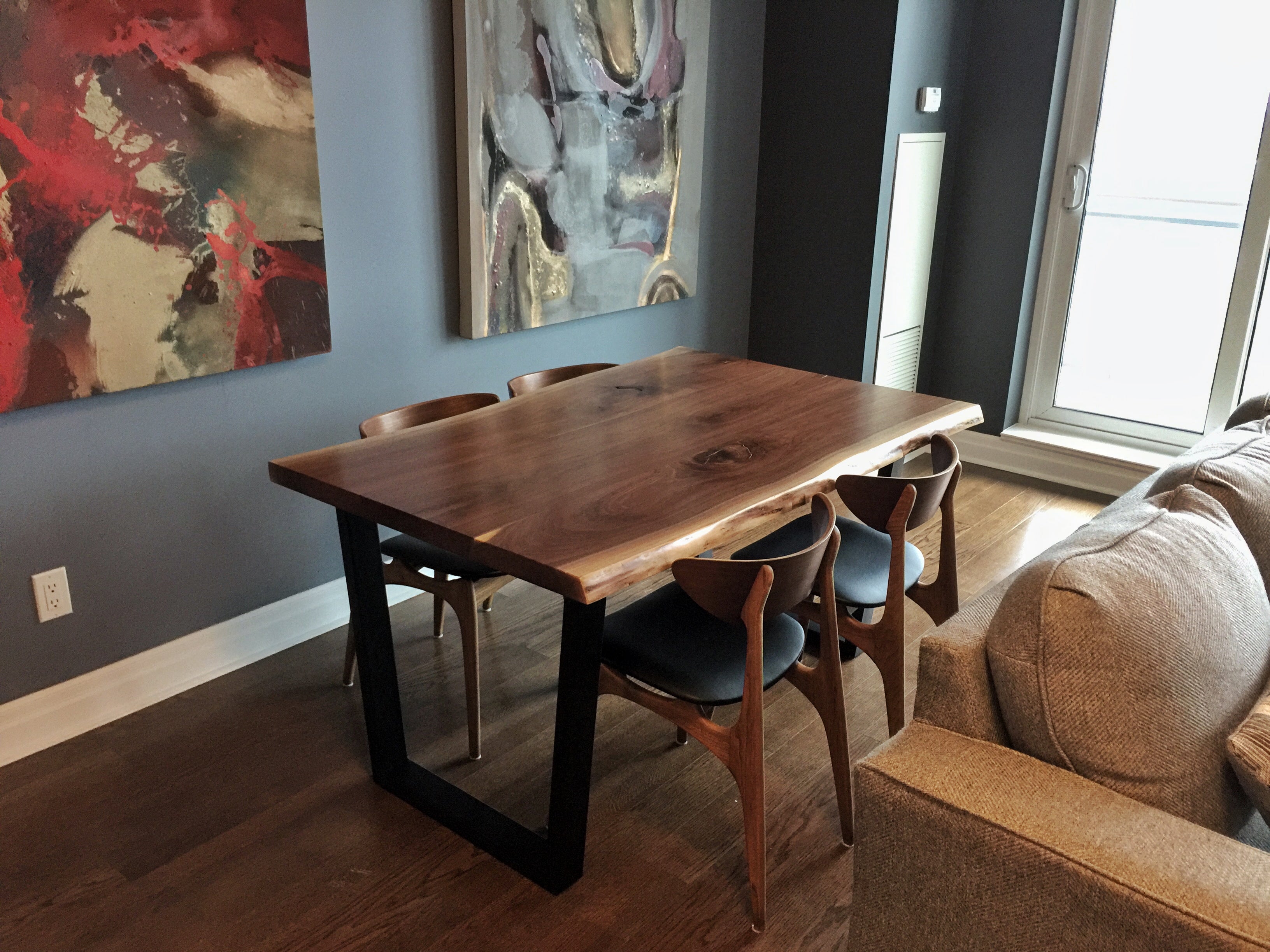 Live Edge Black Walnut Table & Trapezoid Metal Legs