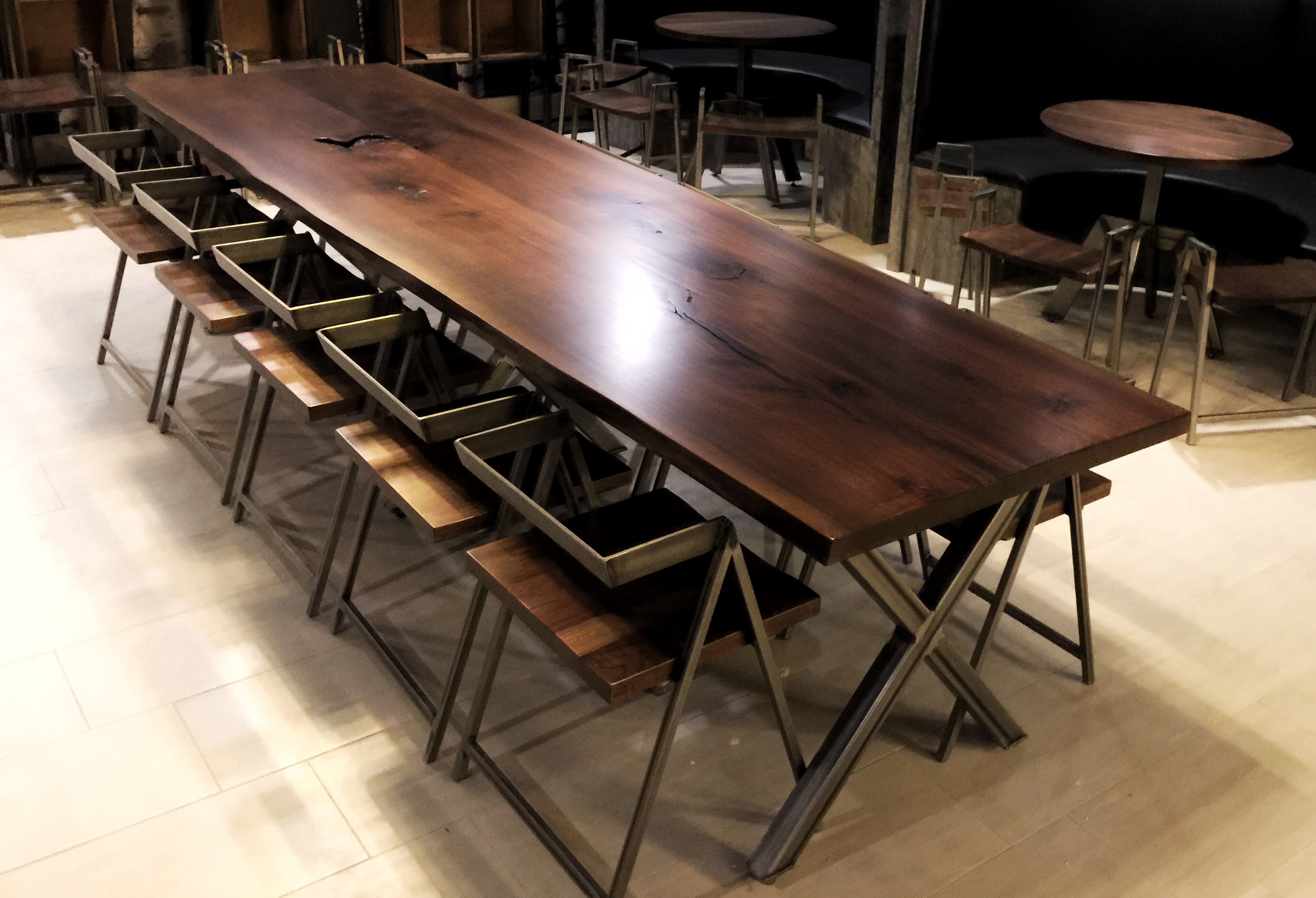 Live Edge Black Walnut Table & X Metal Legs