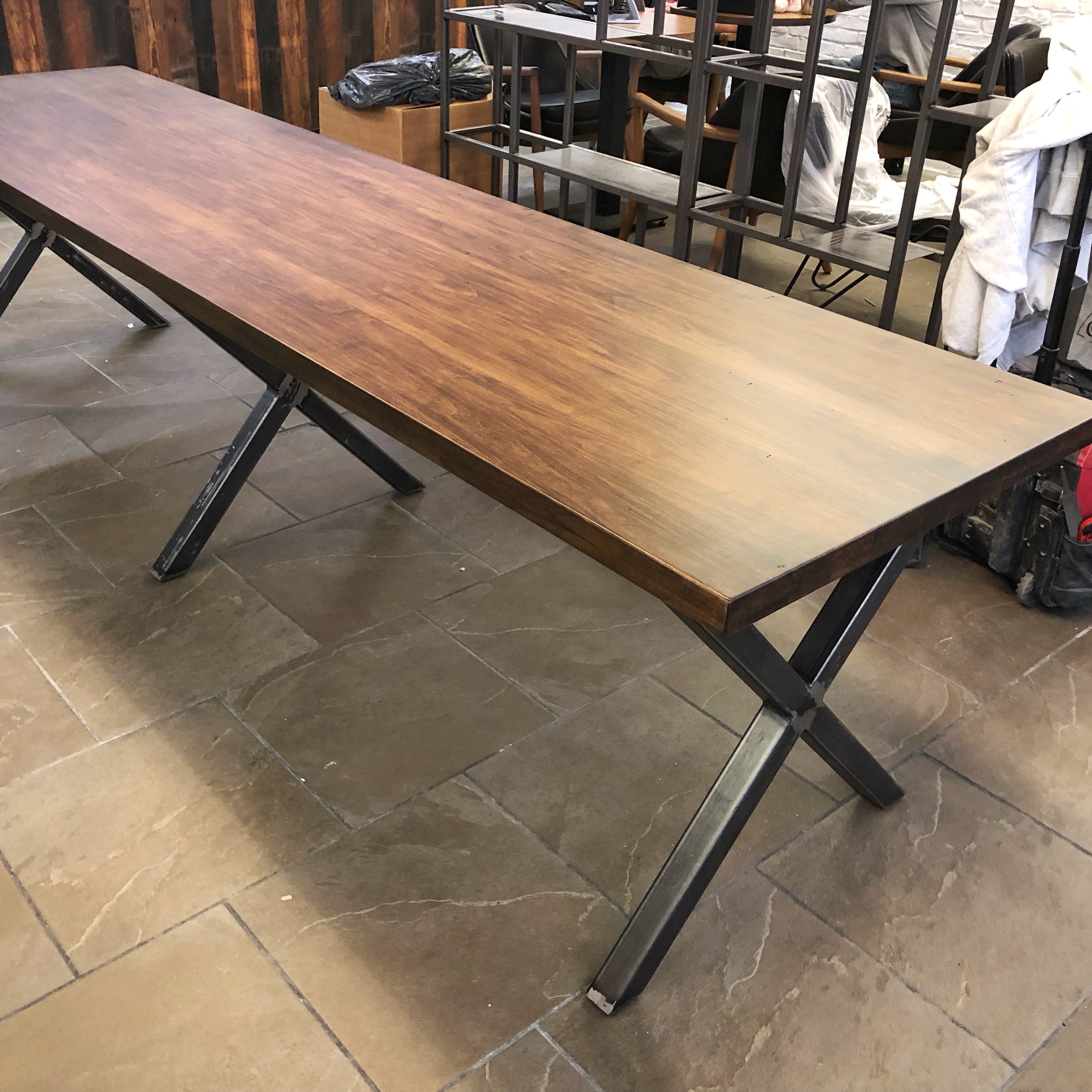 Espresso Maple Table & X Metal Legs