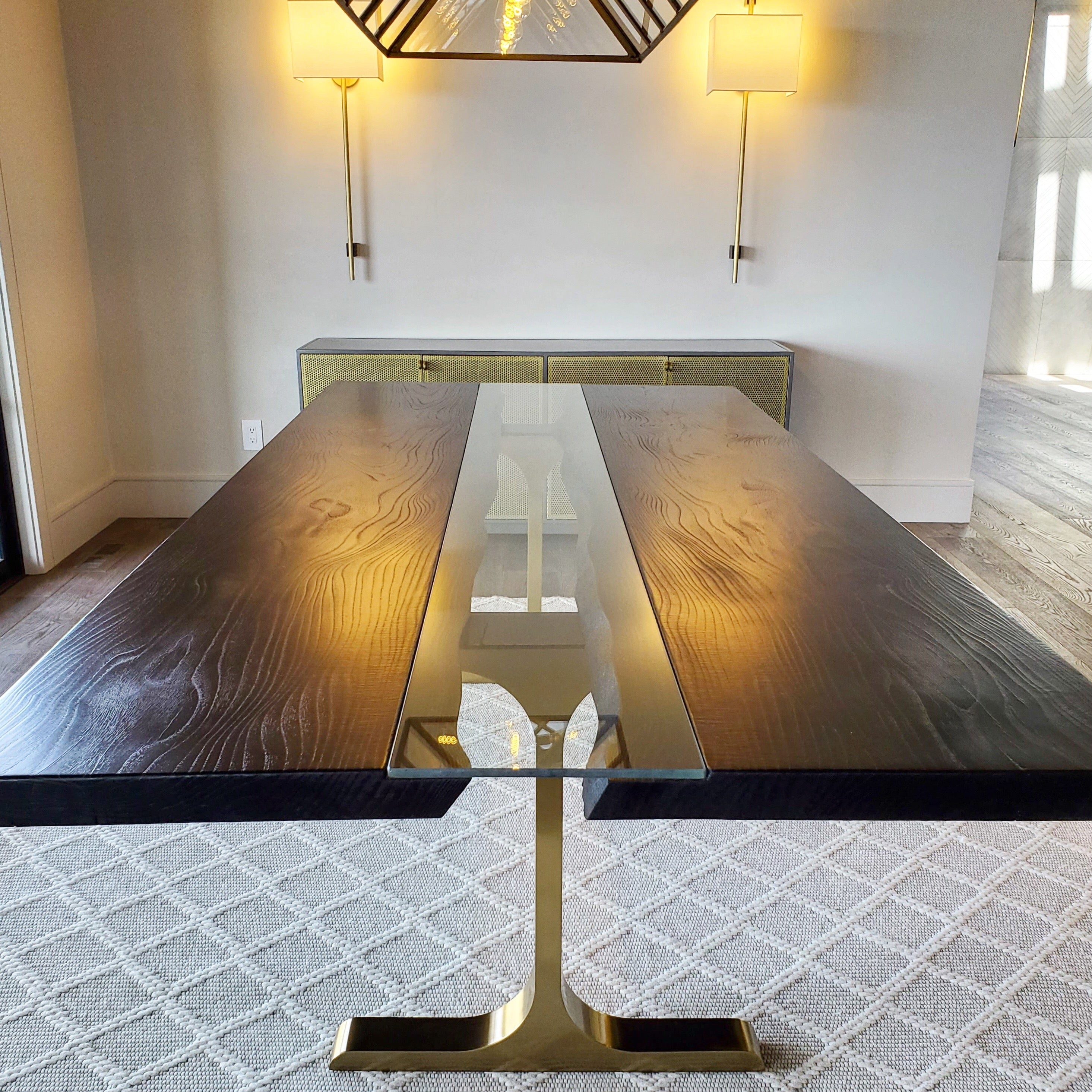 Carbon Ash Glass River Brass T Table