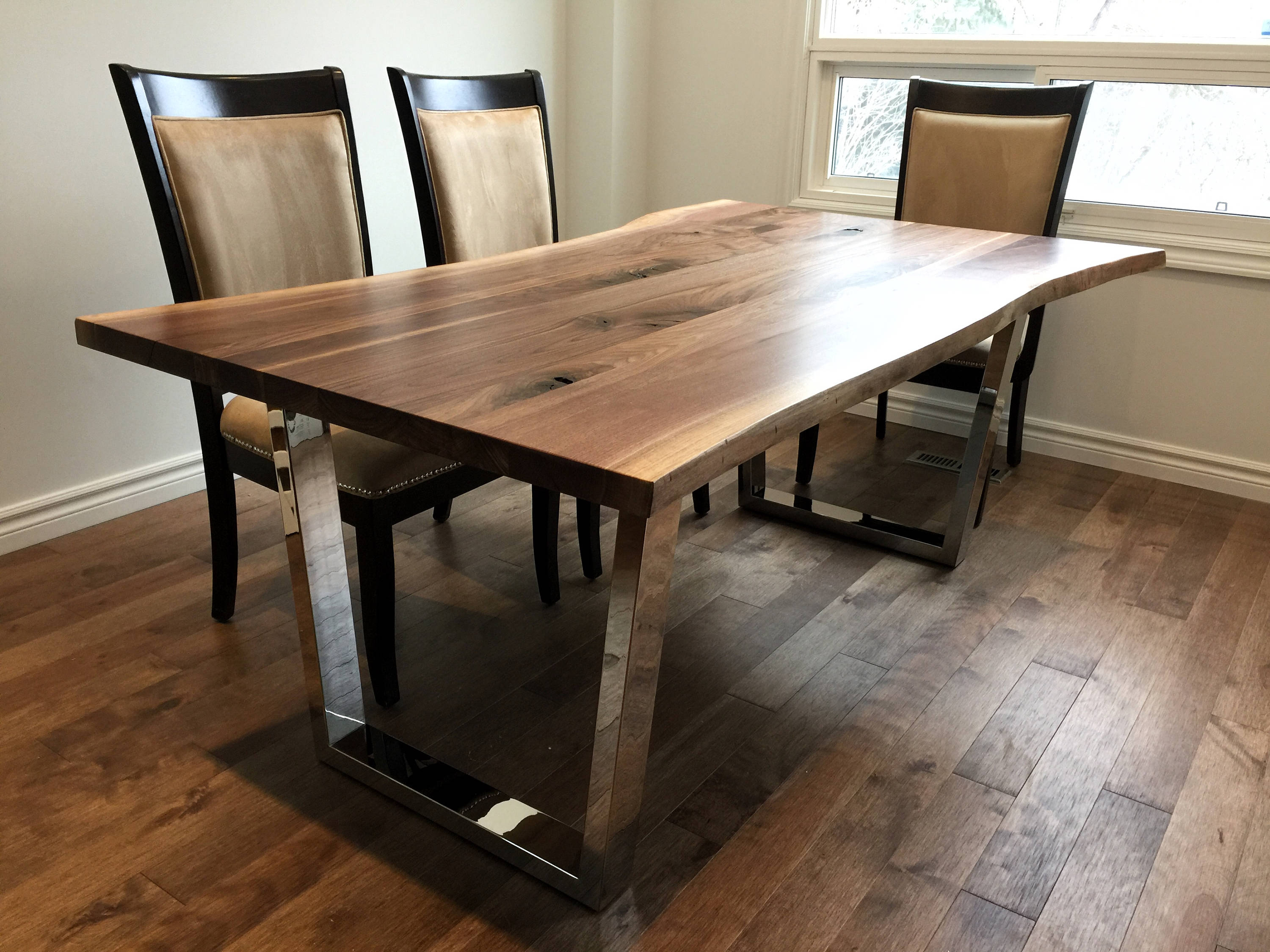 Live Edge Black Walnut & Chrome Trapezoid Legs Table