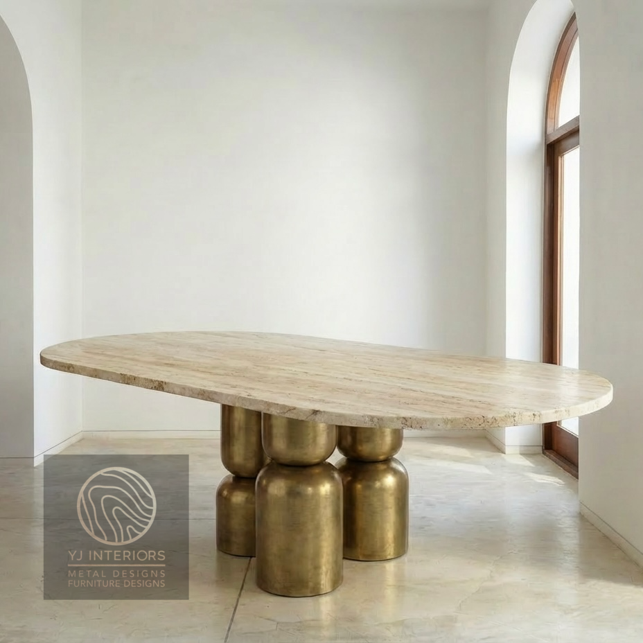 The Tunnel Trapezoid 2.0 Brushed Brass Finish Metal Legs